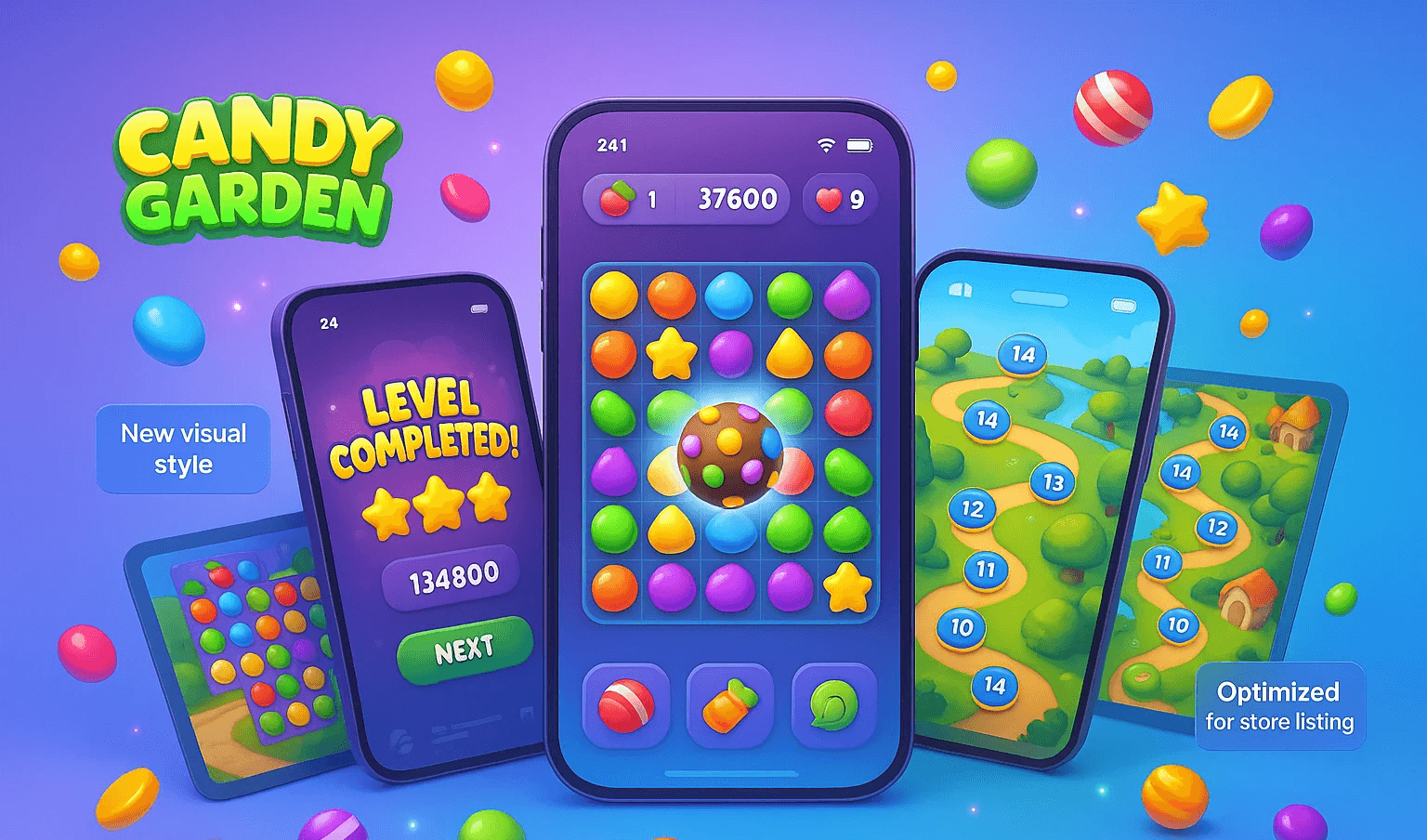 Graphic optimization helped achieve greater brightness, depth, and emotional impact for players. We reworked the color palette, enhanced visual effects, and added 3D depth to make the game more competitive on App Store and Google Play listings. The refreshed visual style made the product more recognizable and appealing.