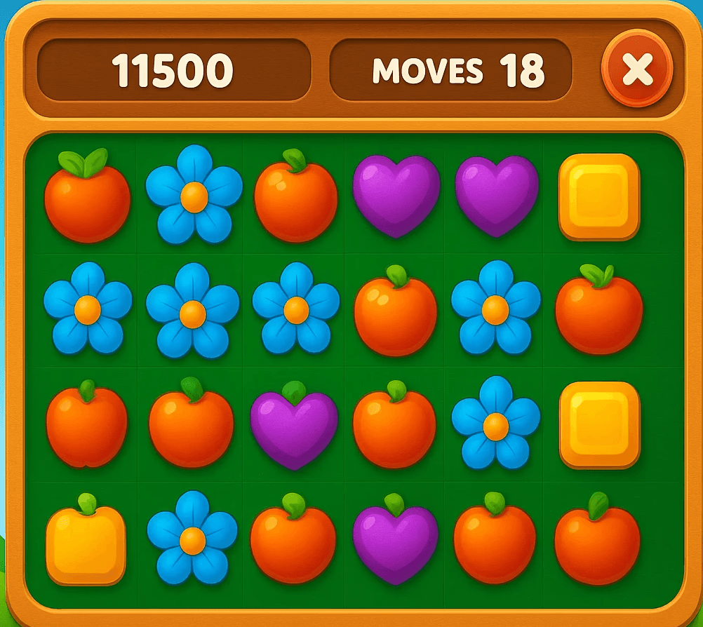 Our User Acquisition team launched a Google Ads App Campaign for a new Match-3 puzzle game. After introducing fresh creative assets — a vibrant game icon and UI mockup — we optimized targeting toward puzzle and casual gamers.